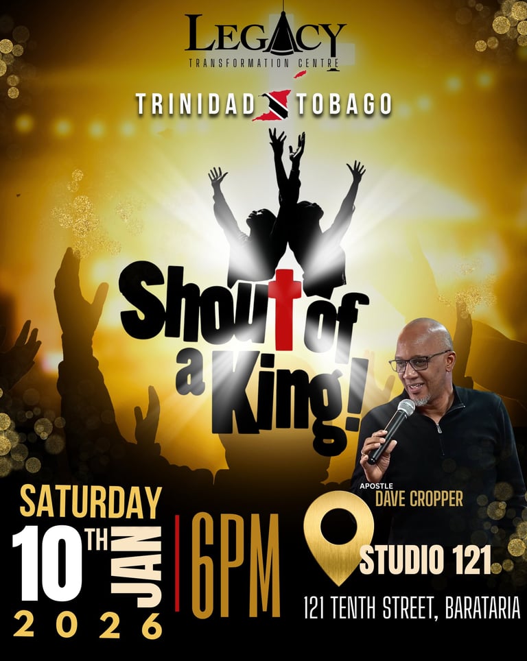 Please find us on Sunday mornings at 9 am, either in-person at 121 Tenth Street, Barataria, Trinidad, or live on Zoom for those not in Trinidad.